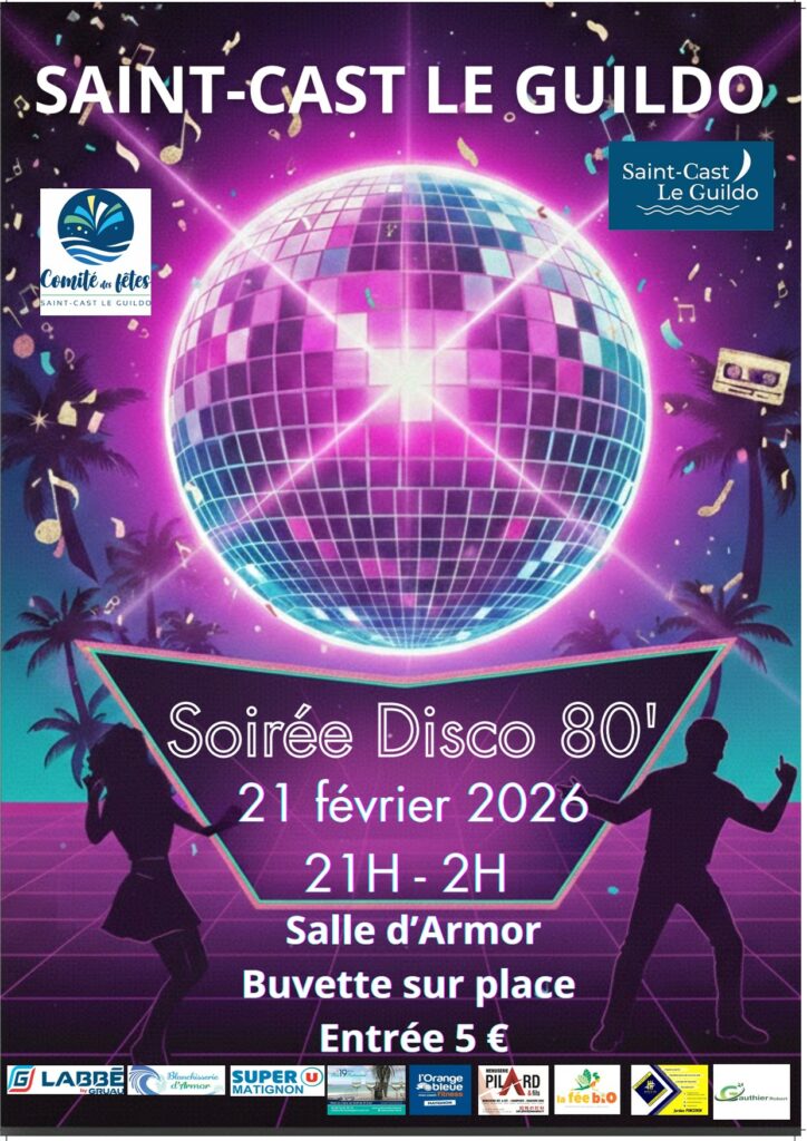 Le comité des fêtes de Saint-Cast Le Guildo vous donne rendez-vous pour une soirée disco festive et conviviale 💃🕺